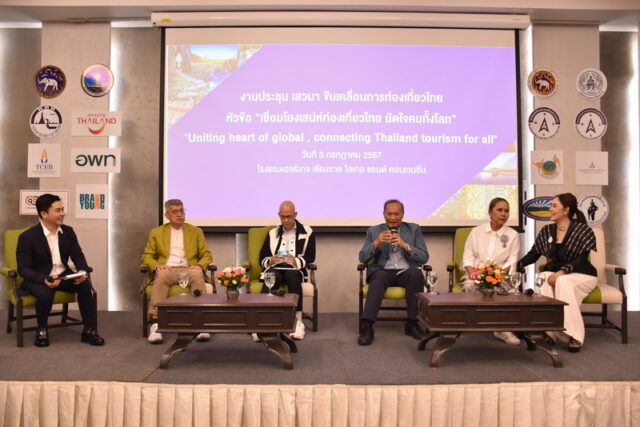 เมื่อวันที่ 3 ก.ค. 67 นางฐาปนีย์ เกียรติไพบูลย์ ผู้ว่าการการท่องเที่ยวแห่งประเทศไทย เป็นประธานในพิธีเปิดการประชุมเสวนา ขับเคลื่อนการท่องเที่ยวไทย หัวข้อ เชื่อมโยงเสน่ห์ท่องเที่ยวไทย มัดใจคนทั้งโลก Uniting heart of global connecting Thailand tourism for all ซึ่งสมาคมสหพันธ์ท่องเที่ยวภาคเหนือ ร่วมกับจังหวัดเชียงราย และภาคธุรกิจท่องเที่ยวจัดขึ้น ที่โรงแรม เฮอริเทจ เชียงราย โฮเทล แอนด์ คอนเวนชั่น จังหวัดเชียงราย มีการแบ่งกลุ่มเสวนาในเรื่อง สร้างการท่องเที่ยวด้วยเสน่ห์ไทย และท่องเที่ยวไทยมัดใจคนทั้งโลก โดยมี นายกสมาคมสหพันธ์ท่องเที่ยวภาคเหนือ 17 จังหวัด นายกสมาคมส่วนภูมิภาค ผู้อำนวยการภาคเหนือ ผู้อำนวยการการท่องเที่ยวแห่งประเทศไทย 11 สำนักงาน ผู้แทนจากองค์การบริหารการพัฒนาพื้นที่พิเศษเพื่อการท่องเที่ยวอย่างยั่งยืน (อพท.) สำนักงานส่งเสริมการจัดประชุมและนิทรรศการ (TCEB) ผู้ประกอบการร้านค้า สื่อมวลชน และภาคส่วนที่เกี่ยวข้อง เข้าร่วมกิจกรรม จำนวนกว่า 600 คน