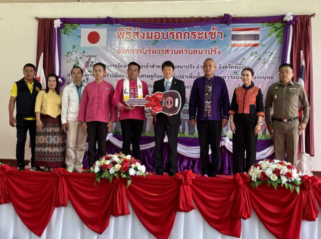 ทางรัฐบาลญี่ปุ่นจึงได้ให้การสนับสนุนแก่องค์การบริหารส่วนตำบลนาปรังเป็นงบประมาณมูลค่า 2,513,000 บาทในการจัดซื้อรถกระเช้าในครั้งนี้ โดยรัฐบาลญี่ปุ่นหวังเป็นอย่างยิ่งว่า องค์การบริหารส่วนตำบลนาปรังจะสามารถทำงานที่จำเป็นต้องใช้รถกระเช้าได้อย่างราบรื่น ทั้งยังสามารถเสริมสร้างความปลอดภัยของประชาชนผู้อยู่อาศัยและยานพาหนะในบริเวณใกล้เคียง และสร้างความแข็งแกร่งให้กับระบบการจ่ายกระแสไฟฟ้าภายในพื้นที่ได้อีกด้วย