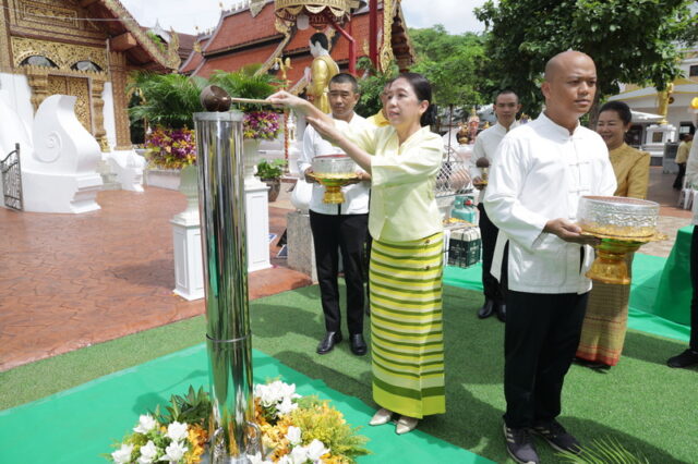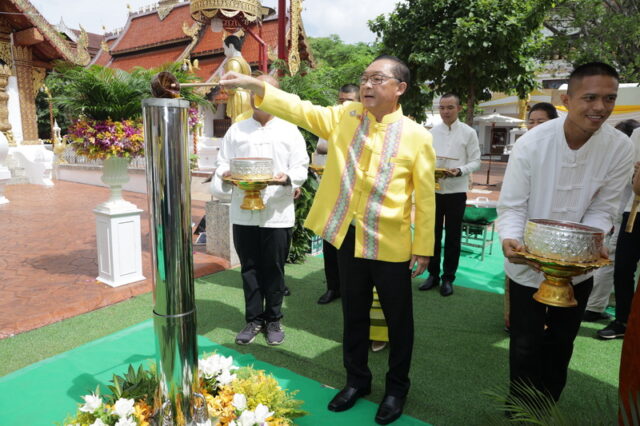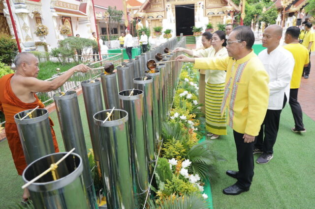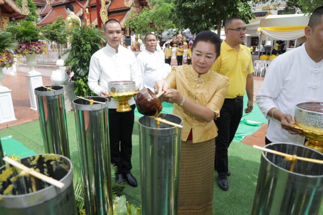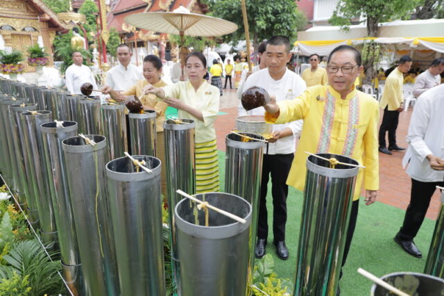 วันที่ 10 ก.ค. 67 ที่ภายในวัดพระสิงห์ (พระอารามหลวง) อำเภอเมืองเชียงราย จังหวัดเชียงราย นายพุฒิพงศ์ ศิริมาตย์ ผู้ว่าราชการจังหวัดเชียงราย เป็นประธานในพิธีทางศาสนากิจกรรมสืบสานประเพณีหล่อเทียนพรรษา เฉลิมพระเกียรติพระบาทสมเด็จพระเจ้าอยู่หัว เนื่องในโอกาสมหามงคลเฉลิมพระชนมพรรษา ๖ รอบ ๒๘ กรกฎาคม๒๕๖๗ และส่งเสริมประเพณีวันเข้าพรรษา ประจำปี 2567 โดยจังหวัดเชียงราย ร่วมกับองค์การบริหารส่วนจังหวัดเชียงราย สำนักงานวัฒนธรรมจังหวัดเชียงราย สำนักงานพระพุทธศาสนาจังหวัดเชียงราย และคณะสงฆ์ในจังหวัดเชียงราย โดยพระพุทธิวงศ์วิวัฒน์ ที่ปรึกษาเจ้าคณะจังหวัดเชียงราย ร่วมกันจัดกิจกรรมขึ้นเพื่อเป็นการส่งเสริมประชาชนได้ปฏิบัติภาวนาถวายเป็นพุทธบูชา ตลอดจนสืบทอดพระพุทธศาสนา เพื่อแสดงออกถึงความสำนึกในพระมหากรุณาธิคุณ รวมทั้งเพื่อเป็นการส่งเสริมให้ประชาชนให้เข้าร่วมกิจกรรมทางศาสนา ได้มีโอกาสศึกษาเรียนรู้หลักธรรมในระดับที่สูงขึ้น ซึ่งจะสามารถนำมาใช้เป็นหลักปฏิบัติในชีวิตประจำวัน เป็นคนดีมีคุณภาพ มีคุณธรรมนำความรู้ เป็นการยกระดับคุณภาพชีวิตและสังคมที่ต่อไปมีคุณภาพ บนพื้นฐานของหลักปรัชญาเศรษฐกิจพอเพียง นำไปสู่การพัฒนาสังคม และประเทศชาติที่ถาวรและยั่งยืน โดยมี นางอทิตาธร วันไชยธนวงศ์ นายกองค์การบริหารส่วนจังหวัดเชียงราย นางสุภาเพ็ญ ศิริมาตย์ ประธานแม่บ้านมหาดไทยจังหวัดเชียงราย คณะผู้พิพากษาหัวศาลจังหวัดเชียงราย หัวหน้าส่วนราชการ ผู้บริหาร อบจ.เชียงราย ข้าราชการ เจ้าหน้าที่ และประชาชนทั่วไป ร่วมใส่เสื้อสีเหลืองเข้าร่วมพิธีหล่อเทียนพรรษาในครั้งนี้ จำนวน 73 เล่ม