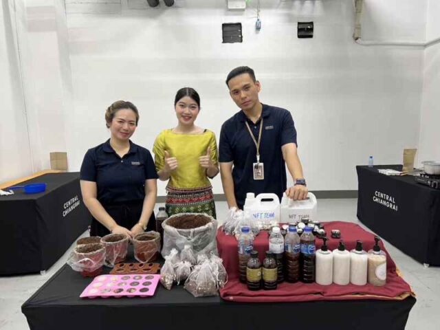 ศูนย์การค้าเซ็นทรัล เชียงราย นำโดยนายสายัณห์ นักบุญ ผู้จัดการทั่วไป, นายพัฒนพล ศิริผลสมสุข เจ้าหน้าที่แผนก Safety&Security ร่วมกับแผนก CX จัดอบรม Workshop การแปรรูปของเหลือใช้ จากกากกาแฟ ในโครงการ “จากกาก สู่แกร่ง” โดยได้อบรม มอบความรู้ ให้กับทาง Sub contract รปภ, พ่อบ้าน แม่บ้าน ได้เรียนรู้ในการทำผลิตภัณฑ์จากของเหลือใช้จากกากกาแฟเพื่อนำมาแปรรูป อาทิ ทำเป็นก้อนสบู่, เทียนหอม, กระถางต้นไม้น้ำ, Em, ก้อนเก็บกลิ่นไล่แมลงและสบู่เหลว