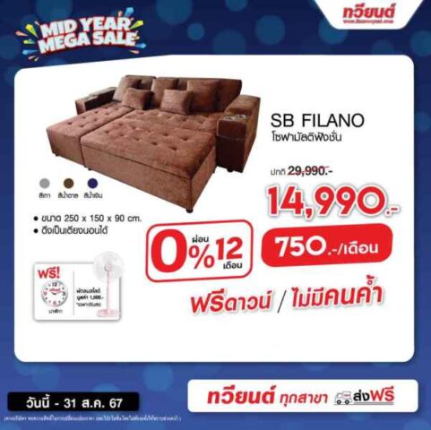 ลดกลางปี ราคาดีกลางเดือน  ☔️ MID Month MEGA SALE ผ่อนสบาย ดอกเบี้ย 0% ไม่มีเงินตาวน์ ที่ ทวียนต์ เท่านั้น ทุกสาขาใกล้บ้าน