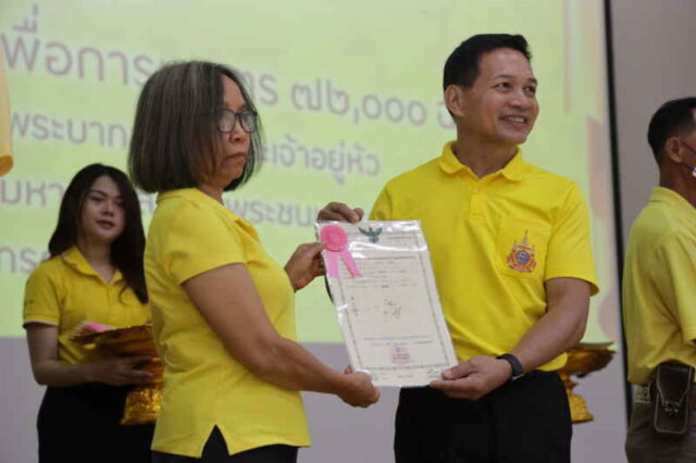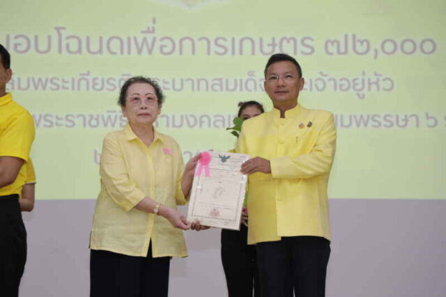 วันนี้ (15 กรกฎาคม 2567) นายประเสริฐ จิตต์พลีชีพ รองผู้ว่าราชการจังหวัดเชียงราย เป็นประธานในพิธีมอบโฉนดเพื่อการเกษตร ให้แก่เกษตรกรในเขตปฏิรูปที่ดิน จำนวน 72 ฉบับ ตามโครงการมอบโฉนดเพื่อการเกษตร จำนวน 72,000 ฉบับ เพื่อเฉลิมพระเกียรติพระบาทสมเด็จพระเจ้าอยู่หัว เนื่องในโอกาสพระราชพิธีมหามงคล เฉลิมพระชนมพรรษา 6 รอบ 28 กรกฎาคม 67 ที่ห้องประชุมประดู่แดง 1 อาคารพลเอกสำเภา ชูศรี มหาวิทยาลัยแม่ฟ้าหลวง ตำบลท่าสุด อำเภอเมืองเชียงราย จังหวัดเชียงราย โดยมี รองอธิการบดีมหาวิทยาลัยแม่ฟ้าหลวง หัวหน้าส่วนราชการสังกัดกระทรวงเกษตรและสหกรณ์ เข้าร่วมพิธีในครั้งนี้ด้วย