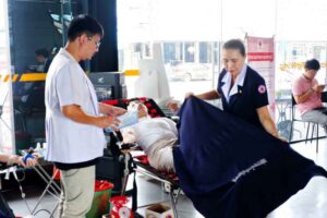 วันศุกร์ ที่ 26 กรกฎาคม 2567 เวลา 09.00 – 12.00 น. นางสุภาเพ็ญ ศิริมาตย์ นายกเหล่ากาชาดจังหวัดเชียงราย พร้อมด้วย คณะกรรมการ-สมาชิกเหล่ากาชาดจังหวัดเชียงรายกลุ่มที่ 3 ร่วมกับ สำนักงานสาธารณสุขจังหวัดเชียงราย โรงพยาบาลเชียงรายประชานุเคราะห์ ออกหน่วยรับบริจาคโลหิต และดวงตาอวัยวะเคลื่อนที่ ณ บริษัท กรีนวิง จำกัด โดยมีผู้มาลงทะเบียนเพื่อบริจาคโลหิตทั้งสิ้น 40 ราย บริจาคได้ 21 ราย ได้ปริมาณโลหิตรวมทั้งสิ้น 9,050 ซีซี