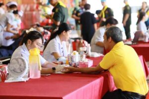 ในการนี้ นางสุวาภรณ์ จิตต์พลีชีพ รองนายกเหล่ากาชาดจังหวัดเชียงราย พร้อมด้วย คณะกรรมการ – สมาชิกเหล่ากาชาดจังหวัดเชียงราย จิตอาสา และยุวกาชาด ร่วมปฏิบัติงาน และร่วมให้กำลังผู้บริจาคโลหิต ในครั้งนี้ด้วย