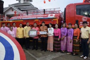 ภายใต้กรอบของโครงการความร่วมมือทางด้านเศรษฐกิจแบบให้เปล่าเพื่อพื้นฐานและความมั่นคงของมนุษย์  (หรือโครงการคุซะโนะเนะ) ทางรัฐบาลญี่ปุ่นได้ให้การสนับสนุนแก่เทศบาลตำบลขุนยวมเป็นงบประมาณมูลค่า 3,025,000 บาท เพื่อจัดซื้อรถบรรทุกน้ำอเนกประสงค์พร้อมถังเก็บน้ำ 7,000ลิตร เนื่องจากเทศบาลแห่งนี้มีบทบาทสำคัญในการดูแลคำร้องเรื่องการยับยั้งอัคคีภัยและการจัดหาน้ำเพื่อการอุปโภคภายในเขตปกครองของตนเองและขององค์กรใกล้เคียงอีก 4 แห่งที่ใช้น้ำจากภูเขาในการอุปโภค ทำให้ได้รับผลกระทบโดยตรงเมื่อปริมาณน้ำฝนลดน้อยลง โดยเฉพาะในช่วงฤดูแล้งมักเกิดปัญหาการขาดแคลนน้ำอย่างรุนแรง จึงเป็นที่คาดหวังว่า การเพิ่มรถดับเพลิงคันที่ 4 ในครั้งนี้จะช่วยพัฒนาความสามารถในการยับยั้งอัคคีภัยและการจัดหาน้ำของเทศบาล ซึ่งจะนำไปสู่ความปลอดภัยและความมั่นคงของประชาชนทั้งในพื้นที่เทศบาลตำบลขุนยวมและพื้นที่ใกล้เคียงในอำเภอขุนยวมต่อไปได้