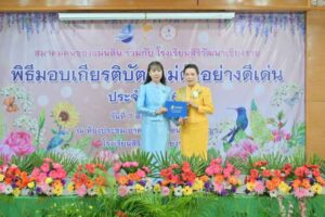 เมื่อวันที่ 7 สิงหาคม 2567 ณ ห้องประชุม อาคารอุบลรัตนราชกัญญา โรงเรียนสิริวัฒนาเชียงราย สมาคมคนของแผ่นดิน ร่วมกับสถานศึกษากลุ่มในเครือไทย – เทค จัดพิธีมอบเกียรติบัตรแก่แม่ตัวอย่างดีเด่น ประจำปี 2567 โดยมี ดร. อนงค์ศรี สิทธิอาษา กรรมการอำนวยการ สภาสตรีแห่งชาติในพระบรมราชินูปถัมป์ เป็นประธานในพิธีมอบ เกียรติบัตรแม่ตัวอย่างดีเด่น ประจำปี 2567 จำนวน 155 คน ซึ่งสมาคมคนดีของแผ่นดินและสถานศึกษาเครือไทย – เทค ได้ร่วมกันจัดทำโครงการสรรหาและคัดเลือกแม่ตัวอย่างดีเด่น ที่ให้การอบรมสั่งสอนบุตร เป็นคนดีมีศีลธรรม ใช้ชีวิตร่วมกับสังคมอย่างเป็นสุข และส่งเสริมให้ได้รับการศึกษาจนประสบผลสำเร็จ ช่วยเหลือส่วนรวมด้วยดีตลอดมา และมี นางณิชาการ บำรุงนอก ผู้อำนวยการโรงเรียนสิริวัฒนาเชียงราย ผู้แทนนายกสมาคมคนของแผ่นดิน กล่าวรายงาน