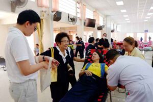 เมื่อวันศุกร์ ที่ 9 สิงหาคม 2567 เวลา 09.00 – 12.00 น. นางสุภาเพ็ญ ศิริมาตย์ นายกเหล่ากาชาดจังหวัดเชียงราย มอบหมายให้ พร้อมด้วย คณะกรรมการ-สมาชิกเหล่ากาชาดจังหวัดเชียงรายกลุ่มที่ 8 ร่วมกับ สำนักงานสาธารณสุขจังหวัดเชียงราย โรงพยาบาลเชียงรายประชานุเคราะห์ ที่ทำการปกครองอำเภอพาน กิ่งกาชาดอำเภอพาน และสมาชิกแม่บ้านมหาดไทยจังหวัดเชียงราย ออกหน่วยรับบริจาคโลหิต และดวงตาอวัยวะเคลื่อนที่ ณ หอประชุมที่ว่าการอำเภอพาน โดยมีผู้มาลงทะเบียนเพื่อบริจาคโลหิตทั้งสิ้น 226 ราย บริจาคได้ 183 ราย ได้ปริมาณโลหิตรวมทั้งสิ้น 68,050 ซีซี มีผู้แสดงความจำนงบริจาคดวงตา 17 ราย บริจาคอวัยวะ 17 ราย และอุทิศร่างกายให้แก่คณะแพทยศาสตร์ มหาวิทยาลัยเชียงใหม่ 15 ราย