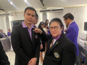 โชติศิริ ดารายน นายกสมาคมสื่อมวลชนและนักประชาสัมพันธ์เชียงราย ร่วมแสดงความยินดีกับ ไลออน วุฒิชาติ  (หนุ่ม) เกรียงเกษร ได้รับตำแหน่งเป็นนายกปีบริหาร 2567-2568