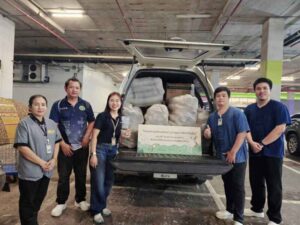 นายสายัณห์ นักบุญ ผู้อำนวยการ พร้อมด้วยทีมจิตอาสา CSR ศูนย์การค้าเซ็นทรัล เชียงราย ร่วมมอบแก้วน้ำพลาสติกที่ใช้แล้ว ที่ได้มีการคัดแยกขยะในศูนย์การค้าฯ เพื่อเก็บรวมรวมนำมาบริจาคในโครงการ “คัดแยกแก้วน้ำพลาสติกใช้แล้ว” ให้กับมูลนิธิขาเทียม โรงพยาบาลแม่ลาว อ.แม่ลาว จ.เชียงราย เพื่อนำไปใช้ในขั้นตอนการผลิตขาเทียม และส่วนที่เหลือนำไปจำหนาวย และได้นำเงินที่ได้มาเป็นค่าใช้จ่ายสำหรับผู้ป่วยพิการทางด้านขา จำนวนแก้วน้ำพลาสติกใช้แล้ว จำนวน 800 kg. โดยได้รับเกียรติจากนายนพณัช บุญสุข ตำแหน่งนักกายภาพบำบัดชำนาญการ 2 นางสาวกาญจนาเชื้อเมืองพาน ตำแหน่งนักกิจกรรมบำบัดชำนาญการ 3 นายเทพบุตร ปัญธรรม ตำแหน่งช่างทำขาเทียม 4 นายเศรษฐวัฒน์ รีรักษ์ ตำแหน่ง ผู้ช่วยนักกายภาพบำบัด เป็นผู้รับมอบ ณ ชั้น G ศูนย์การค้าเซ็นทรัล เชียงราย