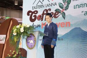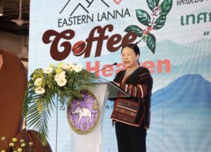 นางสุภาพรรณ หมั่นเจริญ รองผู้ว่าราชการจังหวัดเชียงราย กล่าวว่า กลุ่มจังหวัดภาคเหนือตอนบน 2 มีพื้นที่ปลูกกาแฟร้อยละ 30.36 ของพื้นที่ปลูก ทั้งประเทศ โดยเฉพาะจังหวัดเชียงราย ที่มีพื้นที่ปลูกกาแฟอาราบิก้ามากที่สุดในภาคเหนือ รองลงมาเป็นจังหวัดน่าน แพร่ และพะเยา โดยกาแฟของแต่ละจังหวัดจะมีเอกลักษณ์และความโดดเด่นต่างกัน เนื่องจากด้วยพื้นที่ปลูกและกระบวนการแปรรูป สถิติพื้นที่ปลูกกาแฟตั้งแต่ปี 2564 เป็นต้นมา มีแนวโน้มเพิ่มขึ้น แสดงให้เห็นถึงการขยายตัวของอุตสาหกรรมกาแฟในกลุ่มจังหวัดภาคเหนือตอนบน 2 จะเห็นว่ากาแฟเป็นพืชเศรษฐกิจที่สร้างมูลค่าให้กลุ่มจังหวัด ไม่ต่ำกว่า 721 ล้านบาทต่อปีแล้ว ยังมีส่วนช่วยอนุรักษ์ทรัพยากรธรรมชาติในระบบเกษตรกรรมแบบยั่งยืน ด้วยการปลูกร่วมกับไม้ผลและป่าธรรมชาติ จึงเรียกได้ว่าเป็นกาแฟรักษาป่า สอดคล้องกับเป้าหมายการพัฒนาของภาคเหนือและกลุ่มจังหวัดที่ว่า “ท่องเที่ยวบนพื้นฐานวัฒนธรรมร่วมสมัย ยกระดับคุณภาพสินค้าเกษตร สิ่งแวดล้อมยั่งยืน สู่เศรษฐกิจมั่นคง”