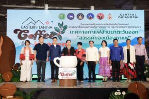 วันที่ 17 สิงหาคม 2567 ณ ลานกิจกรรมชั้น G ศูนย์การค้าเซ็นทรัลเชียงราย นางสุภาพรรณ หมั่นเจริญ รองผู้ว่าราชการจังหวัดเชียงราย เป็นประธานเปิดงาน “เทศกาลกาแฟล้านนาตะวันออก สวรรค์ของเมืองกาแฟ Eastern Lanna Coffee Fest 2024” กิจกรรม ส่งเสริมการประชาสัมพันธ์ผลิตภัณฑ์กาแฟ และพัฒนาเชื่อมโยงตลาดเมล็ดกาแฟคุณภาพ โครงการเพิ่มขีดในการแข่งขันการเกษตรระดับภูมิภาค โดยมีเกษตรและสหกรณ์จังหวัดเชียงราย ผู้อำนวยการส่วนจัดการทรัพย์สินทางปัญญาและนวัตกรรม มหาวิทยาลัยแม่ฟ้าหลวง พร้อมด้วยหัวหน้าส่วนราชการ ประชาชน และสื่อมวลชนเข้าร่วมงาน