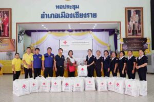เหล่ากาชาดจังหวัดเชียงราย ได้รับการสนับสนุนชุดธารน้ำใจ สภากาชาดไทย จากสำนักงานบรรเทาทุกข์และประชานามัยพิทักษ์ สภากาชาดไทย และสถานีกาชาดที่ 3 เชียงราย ผ่านแอปพลิเคชั่นพ้นภัย