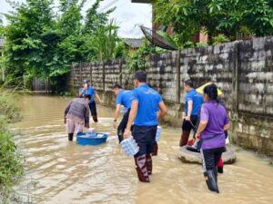 เมื่อวันที่ 21 ส.ค.67 พ.ต.ท.ธนวินท์ พวงมะลิ สว.ส.ทท2 กก.2 บก.ทท.2(เชียงราย-พะเยา)พร้อมข้าราชการตำรวจในสังกัด ได้ออกช่วยเหลือผู้ประสบอุทกภัย โดยได้นำน้ำดื่มไปมอบให้กับประชาชนที่ประสบภัยถูกน้ำท่วมบ้านเรือน บริเวณชุมชนบ้านผางาม ม.9 ต.ผางาม อ.เวียงชัย จ.เชียงราย โดยมีผู้นำชุมชน ฝ่ายปกครอง ปลัดอำเภอเวียงชัย ร่วมกันช่วยเหลือประชาชน
