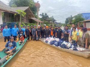 วันพฤหัสบดี ที่ 22 สิงหาคม 2567 นำทีมโดย ผู้ฝูงโมท- น.ท.ปราโมทย์ กุยแก้ว ผู้บังคับฝูงบิน 416 เชียงราย ได้นำกำลังพลฝูงบิน 416 เชียงราย ออกปฏิบัติการช่วยเหลือประชาชน ด้วยการมอบถุงยังชีพจำนวน 400 ถุง และขนย้ายสิ่งของของพี่น้องประชาชน ที่ได้รับผลกระทบจากน้ำท่วม