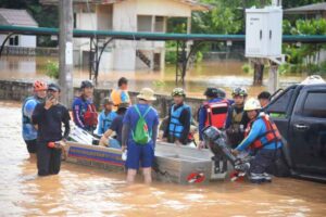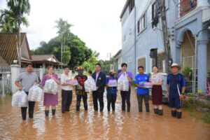 วันที่ 22 สิงหาคม 2567 ดร.อรพิน ดวงแก้ว ผู้อำนวยการวิทยาลัยอาชีวศึกษาเชียงราย มอบหมายให้ นายยุทธการ ตั้งปัญญาศักดิ์ รองผู้อำนวยการฝ่ายบริหารทรัพยากร พร้อมด้วย ดร.สุวารี แปงณีวงค์ รองผู้อำนวยการฝ่ายพัฒนากิจการนักเรียน นักศึกษา นำคณะครูและบุคลากร ลงพื้นที่มอบอาหารและเครื่องดื่ม ช่วยเหลือประชาชนผู้ประสบอุทกภัย (น้ำท่วม) ในพื้นที่ ตำบลเวียง อำเภอเทิง จังหวัดเชียงราย โดยมี นายลิขิต ขัดแก้ว รองผู้อำนวยการวิทยาลัยเทคนิคเทิง นายวรายุทธ ค่อมบุญ นายอำเภอเทิง และคณะ เข้ารับมอบอาหารและเครื่องดื่ม เพื่อนำไปแจกจ่ายให้ชาวบ้านผู้ประสบภัยต่อไป