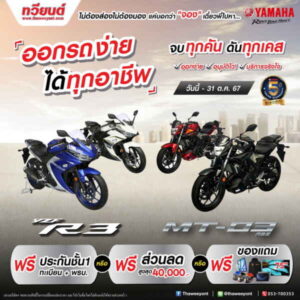 ออกรถง่ายได้ทุกอาชีพ ‍‍‍ ซื้อยามาฮ่า MT-03 & YZF-R3 ฟรีเวอร์ วันนี้ ! ที่ ทวียนต์ ทุกสาขา