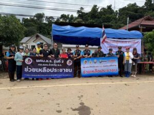โดยมี พ.อ.จักรวีร์ เสนีย์วรยุทธ์  รอง ผอ.รมน.จังหวัด ช.ร.(ท.) พร้อมด้วยเจ้าหน้าที่กอ.รมน.จังหวัด ช.ร. ร่วมกับองค์กรภาคีเครือข่ายช่วยเหลือผู้ประสบภัยน้ำท่วมเชียงราย ผู้เข้าอบรมหลักสูตร พคบ. จังหวัด ช.ร. รุ่นที่ 2 และกู้ภัยมูลนิธิสยามเชียงราย เข้ารับมอบหลังจากนั้นจึงได้นำลงพื้นที่ไปแจกจ่ายให้กับพี่น้องประชาชน ในพื้นที่ อ.เทิง อ.ขุนตาล พญาเม็งราย อ.เวียงแก่น และพื้นที่ประสบอุทกภัยตามวัตถุประสงค์ต่อไป