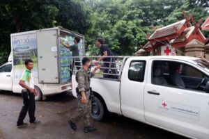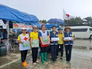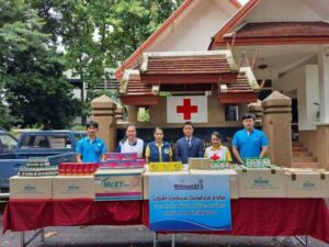 และในเวลา 10.30 น. นางสุภาเพ็ญ ศิริมาตย์ นายกเหล่ากาชาดจังหวัดเชียงราย ได้มอบหมายให้ นางสุวาภรณ์ จิตต์พลีชีพ รองนายกเหล่ากาชาดจังหวัดเชียงราย ร่วมกับ บริษัท โตโยต้าเชียงราย จำกัด และบริษัท มิลลิเมด บีเอฟเอส จำกัด ลงพื้นที่นำสิ่งของบริจาคมอบให้กับอำเภอเวียงชัย อำเภอขุนตาล อำเภอเทิง เพื่อส่งต่อให้กับผู้ประสบอุทกภัยในพื้นที่ต่อไป