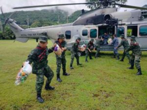 กองทัพอากาศ ส่งเฮลิคอปเตอร์ มาช่วยลำเลียงถุงยังชีพ ช่วยผู้ประสบภัยน้ำท่วมเชียงราย.