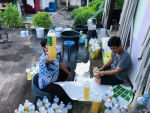 เครือข่ายกาดนัดใบตองและผู้มีจิตศรัทธาได้สบทบทุนผลิตน้ำยาเอนกประสงค์ที่ทำจากน้ำหมักธรรมชาติ บรรจุขวดขนาด 1.5 ลิตร รวมทั้งอาหารสัตว์เลี้ยงบรรจุถุง ส่งมอบผ่านหน่วย HADR กองทัพอากาศฝูงบิน416 เพื่อนำไปแจกจ่ายให้กับผู้ประสบภัยน้ำท่วมในจังหวัดเชียงรายต่อไป