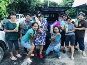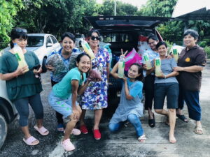 เครือข่ายกาดนัดใบตองและผู้มีจิตศรัทธาได้สบทบทุนผลิตน้ำยาเอนกประสงค์ที่ทำจากน้ำหมักธรรมชาติ บรรจุขวดขนาด 1.5 ลิตร รวมทั้งอาหารสัตว์เลี้ยงบรรจุถุง ส่งมอบผ่านหน่วย HADR กองทัพอากาศฝูงบิน416 เพื่อนำไปแจกจ่ายให้กับผู้ประสบภัยน้ำท่วมในจังหวัดเชียงรายต่อไป