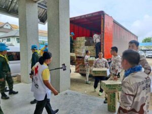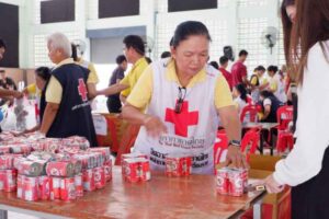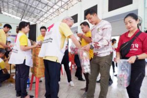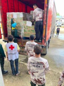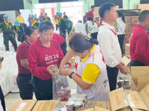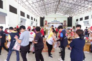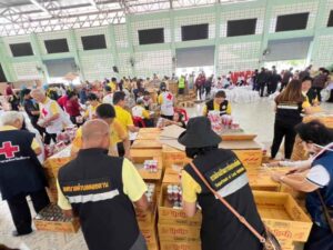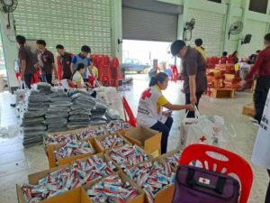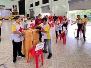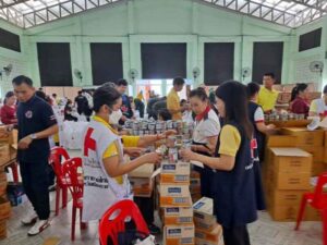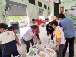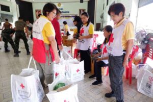 เหล่ากาชาดจังหวัดเชียงราย ร่วมกับบรรจุชุดธารน้ำใจ สภากาชาดไทย เพื่อผู้ประสบอุทกภัยในพื้นที่จังหวัดเชียงราย