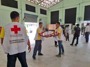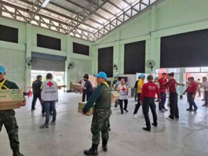 วันศุกร์ที่ 30 สิงหาคม 2567 เวลา 09.00 น. หอประชุมที่ว่าการอำเภอเมืองเชียงราย ตำบลริมกก อำเภอเมืองเชียงราย จังหวัดเชียงราย นางสุภาเพ็ญ  ศิริมาตย์ นายกเหล่ากาชาดจังหวัดเชียงราย มอบหมายให้ คณะกรรมการ – สมาชิกเหล่ากาชาดจังหวัดเชียงราย พร้อมด้วย อาสาสมัครสภากาชาดไทย จิตอาสาสภากาชาดไทย ร่วมกับ มณฑลทหารบกที่ 37 ค่ายเม็งรายมหาราช ตำรวจภูธรจังหวัดเชียงราย ที่ทำการปกครองอำเภอเมืองเชียงราย กิ่งกาชาดอำเภอแม่สาย วิทยาลัยเทคนิคเชียงราย กองร้อยอาสารักษาดินแดนที่ 1 จังหวัดเชียงราย บริษัท โตโยต้าเชียงราย จำกัด เทศบาลตำบลดอยลาน ส่วนท้องถิ่น มูลนิธิแสงธรรมสาธารณกุศล และวิทยาลัยเทคนิคเชียงราย  ร่วมบรรจุสิ่งของชุดธารน้ำใจ สภากาชาดไทย เพื่อเตรียมมอบให้กับผู้ประสบอุทกภัยในพื้นที่จังหวัดเชียงราย จำนวน 2,136 ชุด ซึ่งได้รับการสนับสนุนจาก สำนักงานบรรเทาทุกข์และประชานามัยพิทักษ์ สภากาชาดไทย และสถานีกาชาดที่ 3 เชียงใหม่ ผ่านแอปพลิเคชั่น “พ้นภัย”
