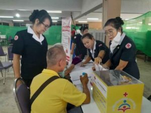 วันพุธที่ 4 กันยายน 2567 เวลา 09.00 น. – 12.00 น. นางสุภาเพ็ญ ศิริมาตย์ นายกเหล่ากาชาดจังหวัดเชียงราย มอบหมายให้คณะกรรมการ-สมาชิกเหล่ากาชาดจังหวัดเชียงราย กลุ่มที่ 5 ร่วมกับสำนักงานสาธารณสุขจังหวัดเชียงราย โรงพยาบาลเชียงรายประชานุเคราะห์ ที่ทำการปกครองอำเภอแม่จัน กิ่งกาชาดอำเภอแม่จัน ออกหน่วยรับบริจาคโลหิต ดวงตา และอวัยวะเคลื่อนที่ ณ หอประชุมเทศบาลตำบลแม่จัน โดยมีผู้มาลงทะเบียนเพื่อบริจาคโลหิตทั้งสิ้น 307 ราย บริจาคโลหิตได้ 215 ราย ได้ปริมาณโลหิตรวมทั้งสิ้น 79,250 cc มีผู้แสดงความจำนงบริจาคดวงตา 7 ราย บริจาคอวัยวะ 7 ราย และบริจาคร่างกายให้คณะแพทยศาสตร์มหาวิทยาลัยเชียงใหม่ จำนวน 1 ราย