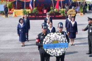 วันพฤหัสบดีที่ 5 กันยายน 2567 เวลา 09.00 น. นางสุภาเพ็ญ ศิริมาตย์ นายกเหล่ากาชาดจังหวัดเชียงราย มอบหมายให้ นางสุวาภรณ์ จิตต์พลีชีพ รองนายกเหล่ากาชาดจังหวัดเชียงราย พร้อมด้วย คณะกรรมการ-สมาชิกเหล่ากาชาดจังหวัดเชียงราย กลุ่มที่ 8 ร่วมพิธีระลึกถึงวีรกรรมผู้เสียสละประจำปี 2567 เพื่อระลึกถึงวีรกรรม คุณงามความดี ของบรรดาทหารกล้าที่สละชีพเพื่อประเทศชาติ ด้วยความกล้าหาญและในการต่อสู้เพื่อป้องกันและปราบปรามผู้ก่อการร้ายคอมมิวนิสต์ ณ ลานผู้กล้า อนุสาวรีย์ผู้เสียสละ ค่ายเม็งรายมหาราช อำเภอเมืองเชียงราย จังหวัดเชียงราย