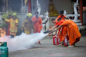 กิจกรรมนี้จัดขึ้นเพื่อให้ความรู้ความเข้าใจในการป้องกันเพลิงไหม้ และการใช้ถังดับเพลิงประเภทต่างๆ ให้กับเด็กและบุคลากร ภายในโรงเรียน พร้อมสอนการป้องกันเพลิงไหม้ทั้งในภาคทฤษฎีและปฏิบัติขั้นต้น เพื่อประโยชน์ในการป้องกันเพลิงไหม้ และระงับเหตุอัคคีภัยได้อย่างถูกต้องและถูกวิธี พร้อมมอบ สิ่งของอุปโภคบริโภค ถังดับไป และหลอดไฟ โดยมี อาจารย์โชติวิทย์ ปัญโญ ผู้อำนวยการโรงเรียนวัดจอเจริญสุขุมวาท เป็นผู้รับมอบ พร้อมด้วยคณะครู และนักเรียน ให้การต้อนรับ ณ บ้านจอเจริญ ต.ดอนศิลา อ.เวียงชัย จ.เชียงราย  (วันนี้)