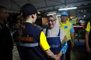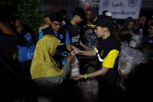 จากนั้น รัฐมนตรีช่วยว่าการกระทรวงมหาดไทย ได้เดินทางไปมอบอาหารปรุงสำเร็จ และพบปะให้กำลังใจประชาชนพร้อมร่วมรับประทานอาหารกับพี่น้องมุสลิมชุมชนกกโท้ง ที่อาศัยอยู่เป็นจำนวนมาก และยังเป็นโรงครัวอาหารฮาลาลปรุงสำเร็จช่วยเหลือพี่น้องมุสลิมในพื้นที่ที่ได้รับความเดือดร้อน ณ ร้านโรตีป้าใหญ่ ตำบลรอบเวียง อำเภอเมืองเชียงราย จังหวัดเชียงราย โดยมี ว่าที่ร้อยตรี ศราวุธ จันทวงศ์ รองผู้ว่าราชการจังหวัดเชียงราย นายปรีชา อนุรักษ์ รองนายกเทศมนตรีนครเชียงราย พล.ต.ต. มานพ เสนากูล ผู้บังคับการตำรวจภูธรจังหวัดเชียงราย และประชาชนในพื้นที่ให้การต้อนรับ