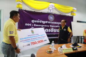 ผู้ว่าฯ เชียงราย รับมอบเงินจากอดีตผู้ว่าราชการจังหวัดเชียงราย และเป็นตัวแทน วปอ.57 เพื่อร่วมช่วยเหลือผู้ประสบอุทกภัยในพื้นที่จังหวัดเชียงราย