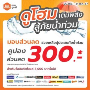 ดูโฮมมอบส่วนลดช่วยผู้ประสบภัยน้ำท่วม คูปองส่วนลด 300.- * สำหรับซื้อสินค้า ในแบรนด์และกลุ่มที่กำหนด 3,000.-*/ ขึ้นไป✨