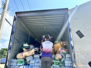 วันที่ 19 กันยายน 2567 นางสมศิริ นคราวงศ์ ผู้อำนวยการวิทยาลัยการอาชีพเวียงเชียงรุ้ง พร้อมด้วยคณะครู บุคลากรทางการศึกษา และนักเรียน นำสิ่งของ น้ำดื่ม ข้าวสารอาหารแห้ง เสื้อผ้า และของใช้จำเป็น จากชาวจังหวัดนครสวรรค์ เพื่อช่วยเหลือผู้ประสบภัยน้ำท่วมที่ อ.แม่สาย จ.เชียงราย “วิทยาลัยการอาชีพเวียงเชียงรุ้งขอเป็นตัวแทนพี่น้องชาวเชียงรายขอขอบคุณชาวนครสวรรค์ที่ร่วมบริจาคสิ่งของ รวมถึงส่งแรงใจให้กับผู้ประสบภัยน้ำท่วมและคณะทำงานให้ผ่านพ้นเหตุการณ์นี้ไปได้ด้วยดี”