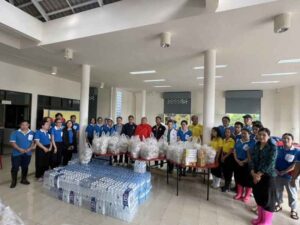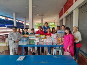 ภาคบ่าย มอบเงินช่วยเหลือผู้ประสบอุทกภัยจำนวน 150,000 บาท พร้อมถุงยังชีพให้แก่ผู้ประสบภัย 7 หมู่บ้าน เขตตำบลริมกก อำเภอเมืองเชียงราย จ.เชียงราย ณ คริสตจักรฟาร์มสัมพันธ์กิจ
