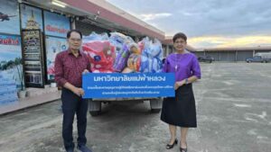 ผศ.ดร.มัชฌิมา นราดิศร อธิการบดี มหาวิทยาลัยแม่ฟ้าหลวง มอบให้นางกัลยา สุวรรณภักดี รองอธิการบดี มหาวิทยาลัยแม่ฟ้าหลวง นำเครื่องนอน เป็นชุดที่นอนปิคนิคพร้อมหมอน มามอบให้สมาคมสื่อมวลชนและนักประชาสัมพันธ์เชียงราย เพิ่มเติม เพื่อมอบให้แก่ สื่อมวลชนที่ประสบอุทกภัย เพื่อบรรเทาความเดือดร้อนเบื้องต้น ณ สำนักงานหนังสือพิมพ์เชียงรายนิวส์ (ที่ทำการชั่วคราว สมาคมสื่อมวลชนฯ)