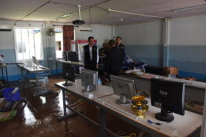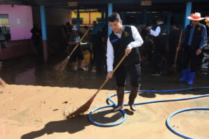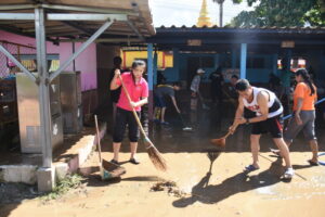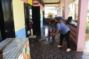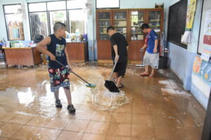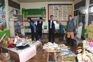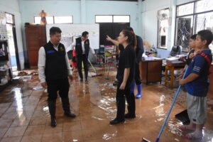 วันที่ 2 ตุลาคม 2567 นายมรกต อนุเคราะห์ ผอ.สพป.เชียงราย เขต 1 นายพิสิฐ ไชยชนะ รอง ผอ.สพป.เชียงราย เขต 1 นายอภิปราย โสภายิ่ง รอง ผอ.สพป.เชียงราย เขต 1 และเจ้าหน้าที่ที่เกี่ยวของ เดินทางไปตรวจสภาพความเสียหายของโรงเรียนสังกัดที่ได้ ได้รับผลกระทบและความเสียหายจากภัยอุทกภัยในวันที่ 1 ตุลาคม 2567 ที่ผ่านมา จำนวน 6 โรงเรียนได้แก่โรงเรียนบ้านป่ารวก โรงเรียนบ้านนางแลใน ต.นางแล โรงเรียนห้วยพลูพิทยา โรงเรียนถ้ำผาตอง ต.ทาสุด โรงเรียนชุมชนบ้านแม่ข้าวต้มหลวง ต.แม่ข้าวต้ม และโรงเรียนบ้านโป่งน้ำตก ต.บ้านดู่ พบว่าโรงเรียนส่วนใหญ่ได้รับการฟื้นฟูปรับปรุงอย่างรวดเร็วโดยได้มรับความรวมมือจากหน่วยงานต่างๆ เข้ามาช่วยพัฒนาให้การช่วยเหลือ แต่มี 2 โรงเรียนได้แก่โรงเรียนชุมชนบ้านแม่ข้าวต้มหลวงและโรงเรียนบ้านป่ารวกที่ได้รับผลกระทบอย่างหนักโดยมีนำพัดพาโคลนเข้าไปภายในบริเวณโรงเรียนสูงกว่า 1.5 เมตร ทำ ให้อาคารเรียน อาคารประกอบสิ่งปลูกสร้างหลายรายการเสียหาย เช่นกำแพงพังทลายกว่า 100 เมตร อุปกรณ์ หนังสือเรียนการเรียนการสอนที่อยู่ภายในชั้น 1 เสียหายเกือบทั้งหมด เร่งให้กลุ่มแผนและงบประมาณประสานทางทุกโรงเรียนสำรวจประเมินความเสียหายเพื่อขอรับงบประมาณจาก สพฐ. รวมถึงประสานจัดทำแผนกับทุกโรงเรียนในสังกัดส่งนักการภารโรงมาร่วมทำความสะอาดโรงพร้อม และมอบถุงยังชีพ อุปกรณ์ทำความสะอาดรองเท้ายาง ให้กำลังใจผู้บริหาร คณะครู นักเรียน ซึ่งทุกคนตั้งใจจะบูรณะฟื้นฟูโรงเรียนให้กลับคืนสู่สภาพเดิมในการส่งเสริมการสร้างคนสร้างชาติ เข้ามาทำความสะอาดก่อนหน้านี้แล้ว 1 ครั้ง แต่ยังต้องใช้เวลาที่ทำการฟื้นฟูจนกว่าจะกลับสู่สภาพเดิม