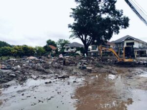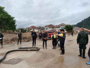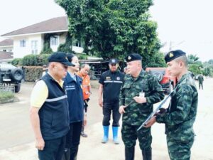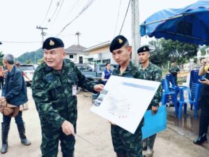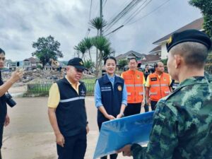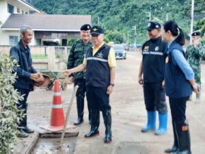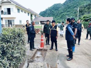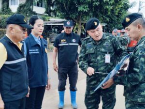 วันนี้ (4 ต.ค.67) นางสาวธีรรัตน์ สำเร็จวาณิชย์ รมช.มหาดไทย ในฐานะประธานศูนย์ปฏิบัติการช่วยเหลือผู้ประสบอุทกภัย วาตภัย และดินโคลนถล่มส่วนหน้า หรือ ศปช.ส่วนหน้าจังหวัดเชียงราย พร้อมด้วยพลเอกณัฐพล นาคพาณิชย์ รัฐมนตรีช่วยว่าการกระทรวงกลาโหม ในฐานะที่ปรึกษา ศปช.ส่วนหน้า ลงพื้นที่หมู่บ้านธนารักษ์ อำเภอเมืองเชียงราย จังหวัดเชียงราย ซึ่งเป็นหมู่บ้านที่อยู่ริมน้ำกก ที่ได้รับผลกระทบกว่า 200 ครัวเรือน ซึ่งขณะนี้กำลังพลของทหาร ปภ. และกำลังพลจากหน่วยงานที่มาร่วมสนับสนุน ได้เร่งระดมกำลังฟื้นฟูพื้นที่ ขุดลอกดินโคลนตามท่อระบายน้ำ ล้างคราบโคลนออกจากพื้นบ้าน ตัวอาคารบ้าน โดยจุดที่ต้องดำเนินการเร่งด่วน คือการทำเขื่อนป้องกันตลิ่งก่อน เบื้องต้นจะดำเนินการระยะทาง 500 เมตร จาก 3 กิโลเมตร งบประมาณ 30 ล้านบาท ซึ่งจุดที่จะดำเนินการก่อนเป็นจุดที่ได้รับความเสียหายมาก เพื่อป้องกันไม่ได้น้ำกัดเซาะตลิ่งเข้ามาเพิ่มเติม ซึ่งรัฐมนตรีช่วยว่าการกระทรวงกลาโหม ได้มอบหมายให้โยธาธิการและผังเมืองจังหวัดเชียงราย นำเสนอโครงการเพื่อขอรับการสนับสนุนงบประมาณ มาดำเนินการอย่างเร่งด่วนแล้ว