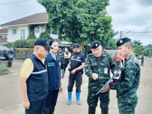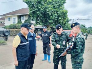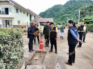 สำหรับ สถานการณ์น้ำได้มีการเฝ้าระวังน้ำล้นตลิ่ง น้ำท่วมขังแม่น้ำสาย ช่วงวันที่ 3 – 4 ต.ค. 67 เนื่องจากเกิดฝนตกหนักใบพื้นที่ตอนบนแม่น้ำสาย ทำให้ระดับน้ำในแม่น้ำสายเพิ่มสูงขึ้นกับแนวพื้นที่เฝ้าระวังกั้นน้ำมีรอยรั่ว ทำให้เกิดน้ำล้นตลิ่ง เข้าพื้นที่ตลาดสายลมจอย อ.แม่สาย จ.เชียงราย ระดับน้ำมีแนวโน้ม ล้นตลิ่ง ประมาณ 1.00 – 1.50 ม.