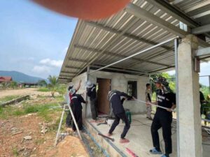 - นายคมสัน คุณใจแก้ว ร่วมกับ นายสุชาติ อวดฉลาด ได้นำผู้ต้องขังเรือนจำชั่วคราวดอยฮาง จำนวน 10 คน ทำการก่อสร้างบ้านน็อคดาวน์ ของ นางสุดา แก้วตา บ้านเลขที่ 752 หมู่ที่ 2 บ้านรวมมิตร ต.แม่ยาว อ.เมือง จ.เชียงราย ช่วงเช้าได้ดำเนินการทาสีภายในอาคาร พร้อมติดตั้งเชิงชายรอบบ้าน ช่วงบ่ายได้ดำเนินการทาสีภายในอาคาร พร้อมติดตั้งเชิงชายรอบอาคารเรียบร้อย