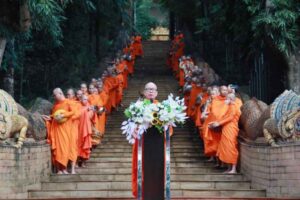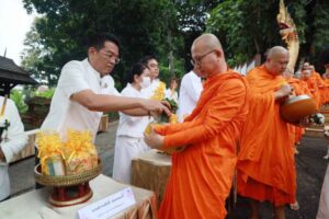 วันที่ 18 ต.ค. 2567 นายโชตินรินทร์ เกิดสม รองปลัดกระทรวงมหาดไทย รักษาการในตำแหน่งผู้ว่าราชการจังหวัดเชียงราย นายวันชัย จงสุทธานามณี นายกเทศมนตรีนครเชียงราย พร้อมด้วย คณะรองผู้ว่าราชการจังหวัดเชียงราย ทั้ง 4 ท่าน ผู้พิพากษาหัวหน้าศาลแขวง ทหาร ตำรวจ หัวหน้าส่วนราชการ เทศบาลนครเชียงราย นายโชติศิริ ดารายน นายกสมาคมสื่อมวลชนและนักประชาสัมพันธ์เชียงราย และพุทธศาสนิกชนชาวเชียงราย ประกอบพิธีตักบาตรเทโวโรหณะหลังวันออกพรรษา 1 วัน ณ ลานด้านหน้าวัดดอยงำเมือง เทศบาลนครเชียงราย ซึ่งเป็นที่ตั้งของสถูปพระอัฐิของพ่อขุนเม็งรายมหาราช ปฐมบรมกษัตริย์ของอาณาจักรล้านนา ผู้สร้างเมืองเชียงราย โดยมี พระรัตนมุนี ที่ปรึกษาเจ้าคณะจังหวัดเชียงราย นำคณะพระภิกษุสงฆ์ และสามเณร จำนวน 111 รูป ออกรับบิณฑบาตด้วยการเดินลงจากเนินเขาของวัดดอยงำเมือง ไปตามเส้นทางในเขตเทศบาลนครเชียงราย โดยมีพุทธศาสนิกชนร่วมตักบาตรอย่างหนาแน่น และจะได้ถือปฏิบัติสืบทอดต่อกันไปเป็นประเพณีที่มีความสำคัญต่อพุทธศาสนิกชนชาวไทย สืบไป