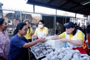 ทั้งนี้ พระอาจารย์เอกชัย สิริญาโณ เจ้าอาวาสวัดใหม่ศรีร่มเย็น ตำบลห้วยซ้อ อำเภอเชียงของ จังหวัดเชียงราย ได้นำอาหาร เช่น ข้าวซอยไก่ ข้าวเหนียวหมูทอด ซาลาเปา ข้าวโพดอบเนย ฯลฯ มาเลี้ยงผู้ประสบอุทกภัยและเจ้าหน้าที่ที่ช่วยฟื้นฟูชุมชนเทิดพระเกียรติในครั้งนี้ด้วย