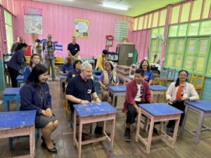 เมื่อวันที่ 22 ตุลาคม 2567 เอกอัครราชทูตฝรั่งเศสประจำประเทศไทย คุณ Jean-Claude Poimboeuf และสมาคมเพื่อน้องฯร่วมกับ บ้านหลายสีโดยอาจารย์อภิรักษ์ ปันมูลศิลป์ ลงพื้นที่ช่วยเหลือฟื้นฟู เยียวยา โรงเรียนที่ได้รับความเสียหายจากสถานการณ์น้ำท่วม โรงเรียนบ้านห้วยทรายขาว โรงเรียนวัดฝั่งหมิ่นวิทยา โรงเรียนบ้านไม้ลุงขนมิตรภาพที่ 169 โรงเรียนบ้านเหมืองแดง และสมาคมฝรั่งเศส-เชียงราย