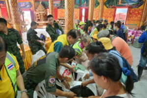สโมสรไลออนส์แม่สาย ร่วมกับ สโมสรไลออนส์พันธมิตร และสมาคมศิริกรณ์เชียงรายบรรเทาสาธารณภัย โดยมี นายประสงค์ หล้าอ่อน รองผู้ว่าราชการจังหวัดเชียงราย เป็นประธานเปิดงาน เพื่อมอบถุงยังชีพจำนวน 1,000 ชุด ให้กับประชาชนผู้ประสบภัยพิบัติในพื้นที่อำเภอแม่สาย บ้านเกาะทราย หมู่ 7 จำนวน 650 ชุด, บ้านไม้ลุงขน หมู่ 10 จำนวน 300 ชุด, บ้านเหมืองแดงใต้ หมู่ 1 (บ้านที่อยู่ริมน้ำสาย) จำนวน 50 ชุด ณ วัดเกาะทราย อ.แม่สาย จ.เชียงราย