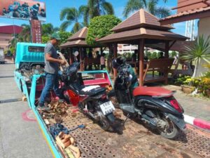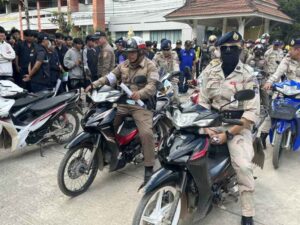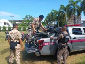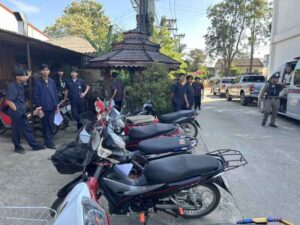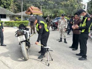 วันที่ 5 พ.ย.67 เวลา 09.00 น. โดยการอำนวยการของ พ.ต.อ.โสภณ ม่วงเฟื่อง ผกก.สภ.เมืองเชียงราย พร้อมด้วย พ.ต.ท.พันชาติ สมตัว รอง ผกก.จร.สภ.เมืองเชียงราย, พ.ต.ท.ฉันทฤทธิ์ เหล่าไพโรจน์จารี รอง ผกก.ป.สภ.เมืองเชียงราย, พ.ต.ท.พรต เศรษฐกร รอง ผกก.สส.สภ.เมืองเชียงราย, พ.ต.ท.สถาพร มังคลาด สวป.สภ.เมืองเชียงราย, พ.ต.ท.สมคิด กันทัด สว.จร.สภ.เมืองเชียงราย, พ.ต.ต.อิทธิพัทธิ์ ศรีวิชัย สวป.(ชส.) สภ.เมืองเชียงราย, ชุดปฏิบัติการสายตรวจ และ ชุดปฏิบัติการจราจร ร่วมบูรณาการกับหน่วยเครือข่าย ได้แก่ อ.เมืองเชียงราย, ขนส่งจังหวัดเชียงราย, ผู้แทนสถานศึกษา, กำนัน ต.ป่าอ้อดอนชัย และส่วนที่เกี่ยวข้อง เพื่อดำเนินการตามยุทธการ “บุกบ้านอันธพาล จังหวัดเชียงราย 2567” ตามนโยบายของ พล.ต.ต.มานพ เสนากูล ผบก.ภ.จว.เชียงราย ให้กวดขันตรวจยึดรถจักรยานยนต์ ที่มีการดัดแปลงสภาพท่อเสียงดัง อุปกรณ์ส่วนควบไม่ครบ เพื่อไม่ให้ก่อความเดือดร้อนรำคาญ และป้องกันและลดอุบัติเหตุบนท้องถนนในช่วงเทศกาลลอยกระทงและปีใหม่ ในพื้นที่รับผิดชอบของ สภ.เมืองเชียงราย ผลการดำเนินการ สามารถตรวจยึดรถจักรยานยนต์ดัดแปลงสภาพ รวมจำนวน 86 คัน