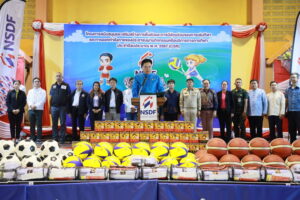 วันที่ 5 พฤศจิกายน 2567 นายนรศักดิ์ สุขสมบูรณ์ รองผู้ว่าราชการจังหวัดเชียงราย พร้อมด้วยนายสุรศักดิ์ เกิดจันทึก รองผู้ว่าการการกีฬาแห่งประเทศไทยฝ่ายส่งเสริมกีฬา และ นายทนุเกียรติ จันทร์ชุม ผู้จัดการกองทุนพัฒนาการกีฬาแห่งชาติ เป็นประธานในการมอบอุปกรณ์กีฬา ของโครงการสนับสนุน และเสริมสร้างการตื่นตัวและการมีส่วนร่วมของการเล่นกีฬาและการออกกําลังกายของประชาชน ผ่านกิจกรรมหรือบริการทางการกีฬา ประจำปีงบประมาณ พ.ศ. 2567 ให้แก่โรงเรียนในพื้นที่จังหวัดเชียงราย ณ โรงเรียนบ้านสันโค้ง อ.เมืองเชียงราย จ.เชียงราย โดยกองทุนพัฒนาการกีฬาแห่งชาติ ร่วมกับจังหวัดเชียงราย จัดขึ้นเพื่อส่งมอบให้กับ 9 โรงเรียน ที่ได้รับผลกระทบจากน้ำท่วม ทำให้อุปกรณ์กีฬาได้รับความเสียหาย โดยอุปกรณ์กีฬาทั้งหมดได้รับการสนับสนุนจาก กองทุนพัฒนาการกีฬาแห่งชาติ โดยมี นางชญาณ์นันท์ เชื้อศิริถาวร ผู้อำนวยการสำนักงานการกีฬาแห่งประเทศไทย จังหวัดเชียงราย ผู้แทนนายกองค์การบริหารส่วนจังหวัดเชียงราย ผู้แทนนายแพทย์สาธารณสุขจังหวัดเชียงราย ตลอดจนผู้บริหารสถานศึกษา ครู และนักเรียน เข้าร่วมพิธีจำนวนมาก