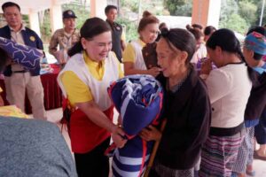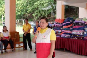 เมื่อวันจันทร์ที่ 4 พฤศจิกายน 2567 นางปวีณ์ริศา เกิดสม ภริยารองปลัดกระทรวงมหาดไทย รักษาการในตำแหน่งผู้ว่าราชการจังหวัดเชียงราย พร้อมด้วย นายวรายุทธ ค่อมบุญ นายอำเภอเทิง /นายกกิ่งกาชาดอำเภอเทิง และคณะกรรมการ-สมาชิกกิ่งกาชาดอำเภอเทิง ร่วมกับที่ทำการปกครองอำเภอเทิง ลงพื้นที่มอบเครื่องกันหนาวให้แก่ประชาชนในพื้นที่บ้านรักแผ่นดิน หมู่ที่ 15 ตำบลตับเต่า อำเภอเทิง จังหวัดเชียงราย จำนวน 200 ชุด และเครื่องกันหนาวสำหรับเด็ก เพื่อเตรียมความพร้อมรับภัยหนาว และเยี่ยมกลุ่มเปราะบางในพื้นที่ตำบลตับเต่า อำเภอเทิง จังหวัดเชียงราย จำนวน 5 ราย ในการนี้ได้มอบเครื่องอุปโภค-บริโภค เพื่อเป็นขวัญและกำลังใจแก่กลุ่มเปราะบาง