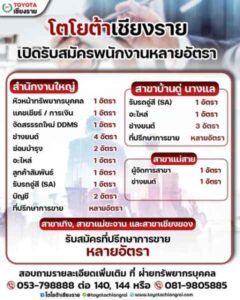 โตโยต้าเชียงราย เปิดรับสมัครพนักงาน