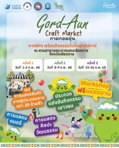 สมาคมสหพันธ์ท่องเที่ยวภาคเหนือจังหวัดเชียงราย และจังหวัดเชียงราย และน้องกอดอุ่น ขอเชิญทุกท่านร่วมงาน”กาดกอดอุ่น Gord-Aun Craft Market” กาดชิคๆ พร้อมกิจกรรมสนุกๆในสุดสัปดาห์