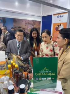 พาณิชย์จังหวัดเชียงราย (นางณัฐพร มหาไพบูลย์) ประสานนำผู้ประกอบการ (บริษัท เวลคัม ทู เชียงราย จำกัด) (TRADER CHIANGRAI) เข้าร่วมงานเจรจาธุรกิจ BENGAL BUSINESS SUMMIT ระหว่างวันที่ 5-6กุมภาพันธ์ 2568 ณ เมืองกัลกัตตา รัฐเบงกอลตะวันตกศูนย์กลางเศรษฐกิจของอินเดียฝั่งตะวันออก ลักษณะงาน : Thailand Pavilion ขนาด 36 ตร.ม. รูปแบบ : เจรจาธุรกิจ/Showcase ณ รัฐเบงกอลตะวันตกสาธารณรัฐอินเดีย ซึ่งเป็นศูนย์กลางเศรษฐกิจของอินเดียฝั่งตะวันออก การเจรจาธุรกิจเพื่อการพัฒนาเศรษฐกิจของอินเดียฝั่งตะวันออก และเป็นประตูสู่ตลาดอินเดียตะวันออก-ตะวันออกเฉียงเหนือที่มีประชากรกว่า 200 ล้านคน ความต้องการสินค้าไทยในอินเดียกำลังเติบโตโดยเฉพาะในกลุ่มสินค้าผลิตภัณฑ์อาหารเครื่องดื่มเพื่อสุขภาพและสินค้าประเภทเสื้อผ้าแฟชั่น เป็นการสร้างความสัมพันธ์อันดีกับภาคเอกชน รวมทั้งสร้างโอกาสทางการค้า เชื่อมโยงด้านการตลาด ขับเคลื่อนเศรษฐกิจ และเกิดประโยชน์สูงสุดแก่กลุ่มเกษตรกร ผู้ผลิต ผู้ประกอบการ ภาครัฐและภาคเอกชน นำไปสู่การพัฒนาความสามารถในการแข่งขันในอนาคต โดยได้มีการนำสินค้าจังหวัดเชียงรายเข้าร่วม ได้แก่ ผลิตภัณฑ์อาหารแปรรูป ผลไม้แปรรูป (มะม่วง, สัปปะรด) ผลิตภัณฑ์จากผ้าชาติพันธุ์, ผ้าทอ, ผ้าปัก และ น้ำผึ้ง ฯลฯ